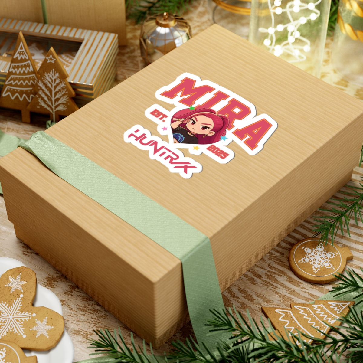 A glossy kiss-cut vinyl sticker that brings playful energy to personal gear. The design features a bold varsity-style nameplate, a chibi-style character with confident expression, and colorful accent stars — all printed in vivid, eco-solvent inks for bright, lasting color. The kiss-cut format makes the sticker easy to peel and apply to laptops, journals, windows, and other smooth flat surfaces. With a durable vinyl face and permanent acrylic adhesive backing, it goes on smoothly and stays in place for indoor decorating and everyday use. Offered in multiple sizes and both white or transparent options, this sticker adds a touch of personality and fandom-ready flair to spaces where fans collect and display their favorite characters and logos.